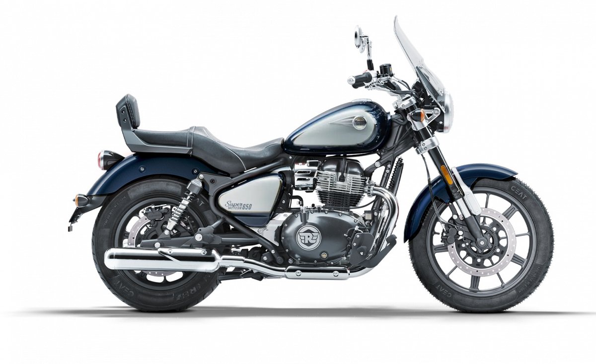Super Meteor 650 - Pure Cruising^A quintessential cruiser, the Super Meteor 650 combines uncluttered controls and instrumentation with relaxed rider ergonomics; rock-steady stability on highways with pure riding pleasure even on the most winding roads where it keenly changes direction. Its flexible, smooth engine has torque aplenty and its cool retro styling is infused with clearly recognisable Royal Enfield DNA.