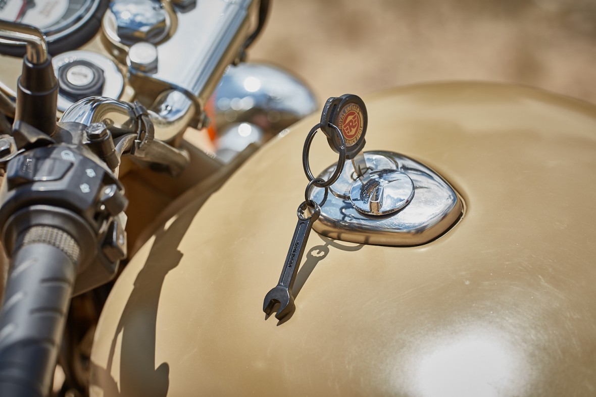 The Goan Classic 350's edge-laced aluminium spoke wheels and retro-styled tubeless tyres offer a dash of old-school, while reducing the risk of punctures and ensuring easy repairs.
